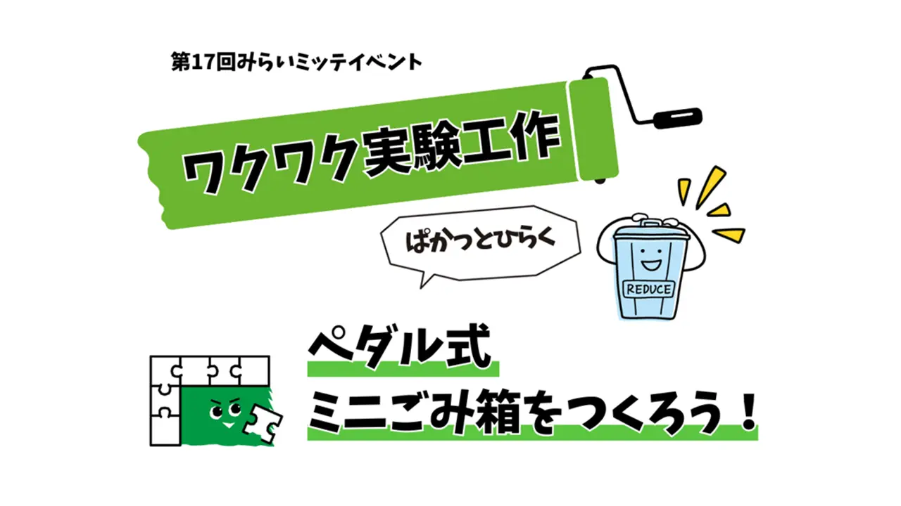 春のイベントテーマは「ワクワク実験工作 ぱかっとひらく ペダル式ミニごみ箱をつくろう!」です。