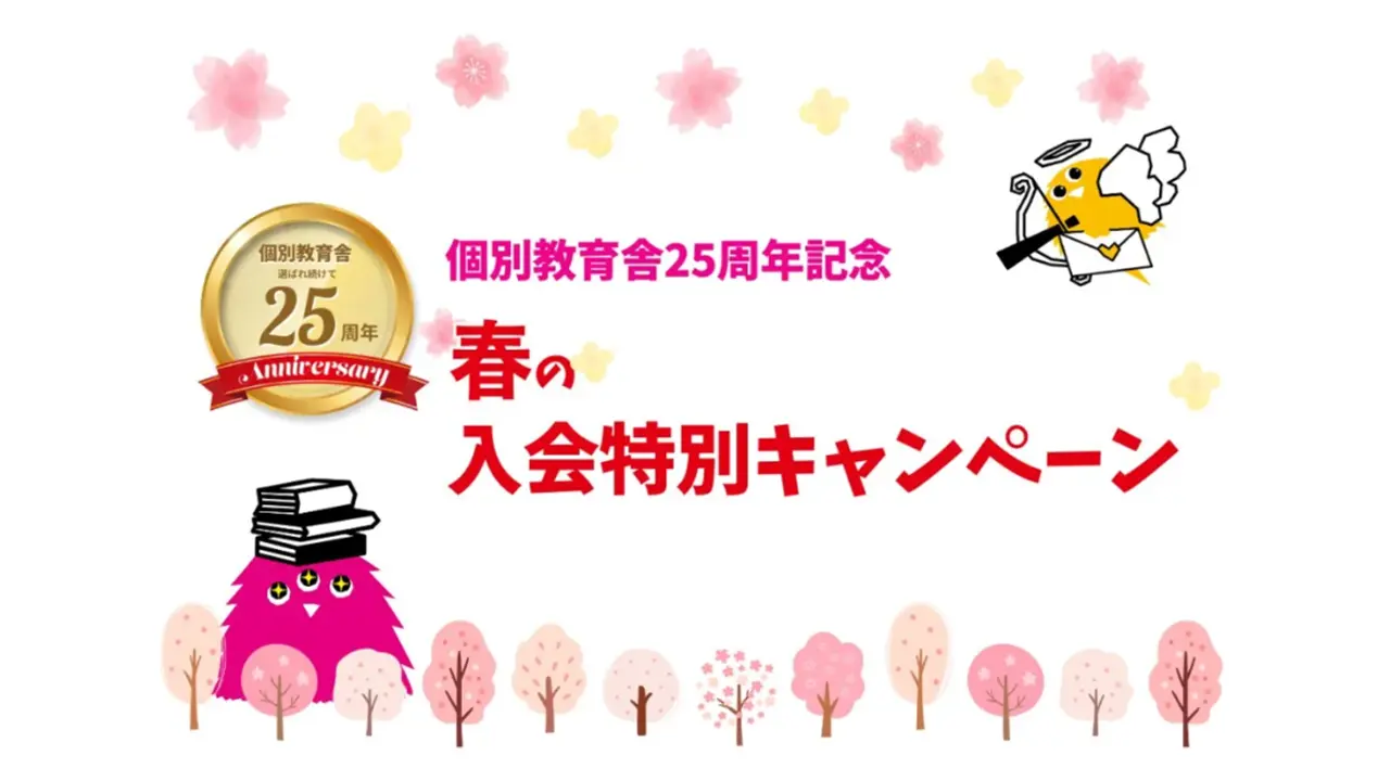 現在みらいミッテでは、個別教育舎25周年を記念した「春の入会特別キャンペーン」を実施中です。4月11日までにご入会いただいた先着50名様に限り、2か月のレッスン料が無料になります。