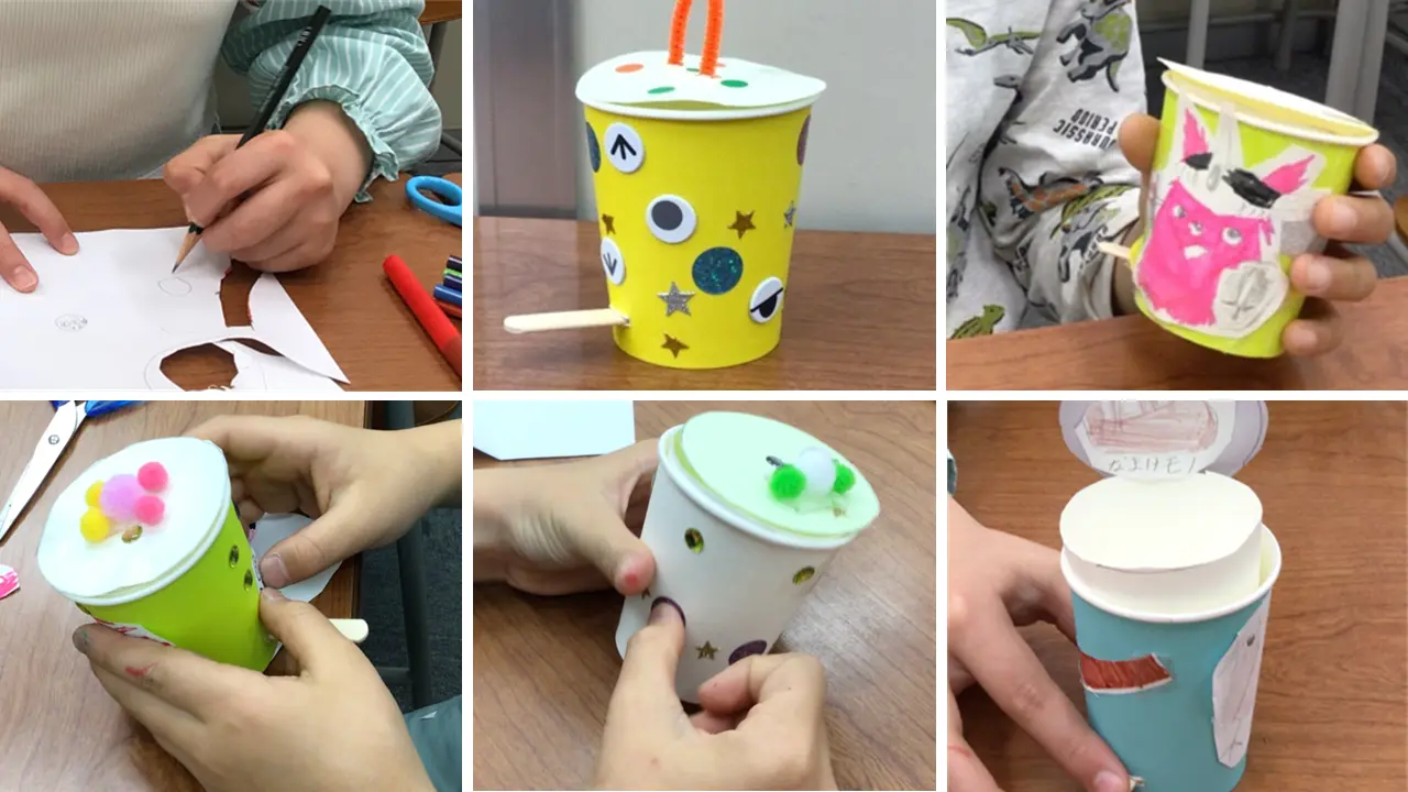 好きな動物やキャラクターを描く子、シールでデコレーションする子、ふたを開けると絵が見える仕掛けを作る子、さらにはペダルを強く押すと中から何かが飛び出す“びっくり箱”のような工夫をする子もいました。