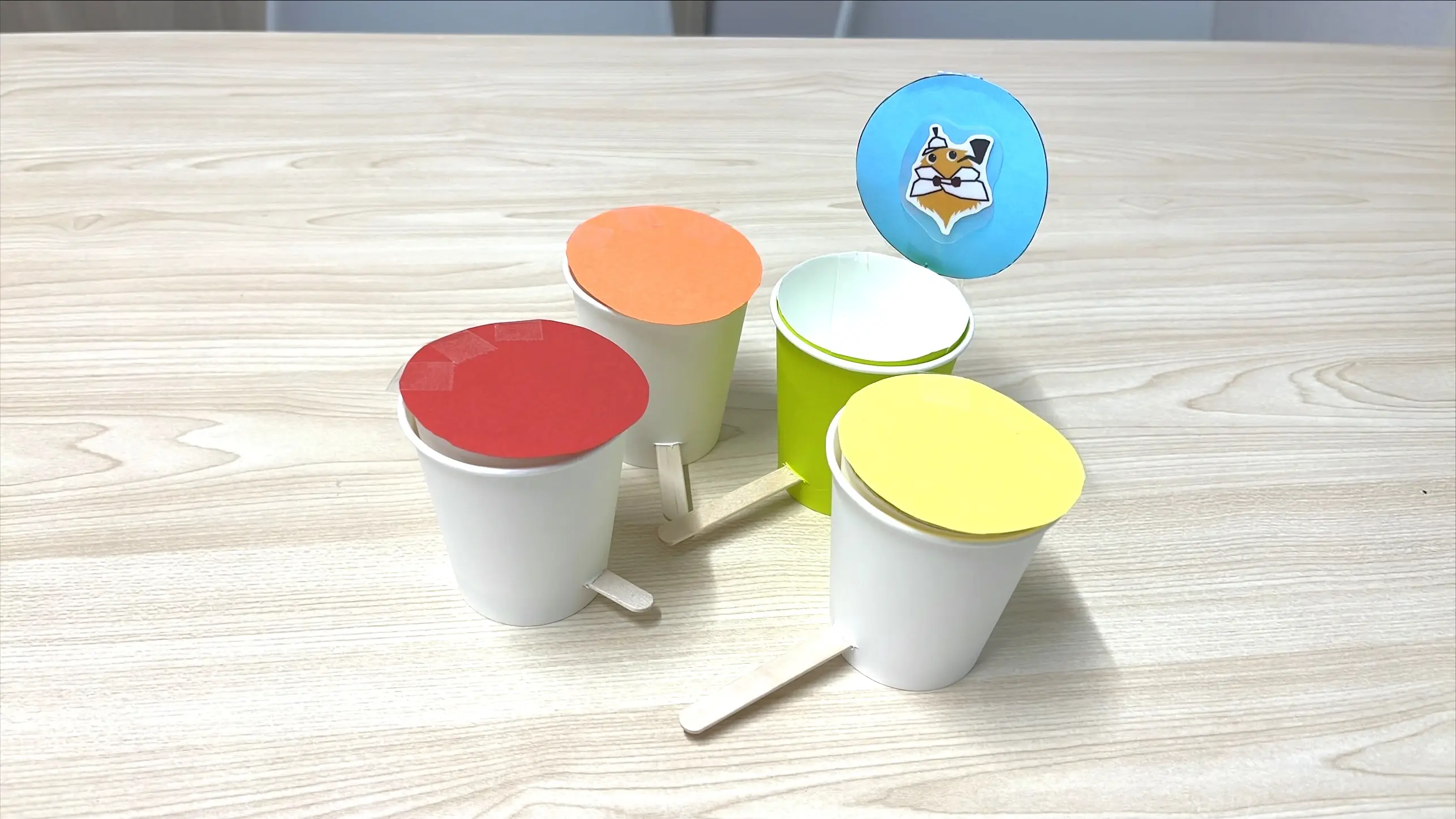 思いおもいにお気に入りのごみ箱を完成させることができました。何気ない工作でしたが、てこの原理を知った上で紙コップと木のスティックのかみ合わせに気を配り、丁寧に作品を仕上げていました。