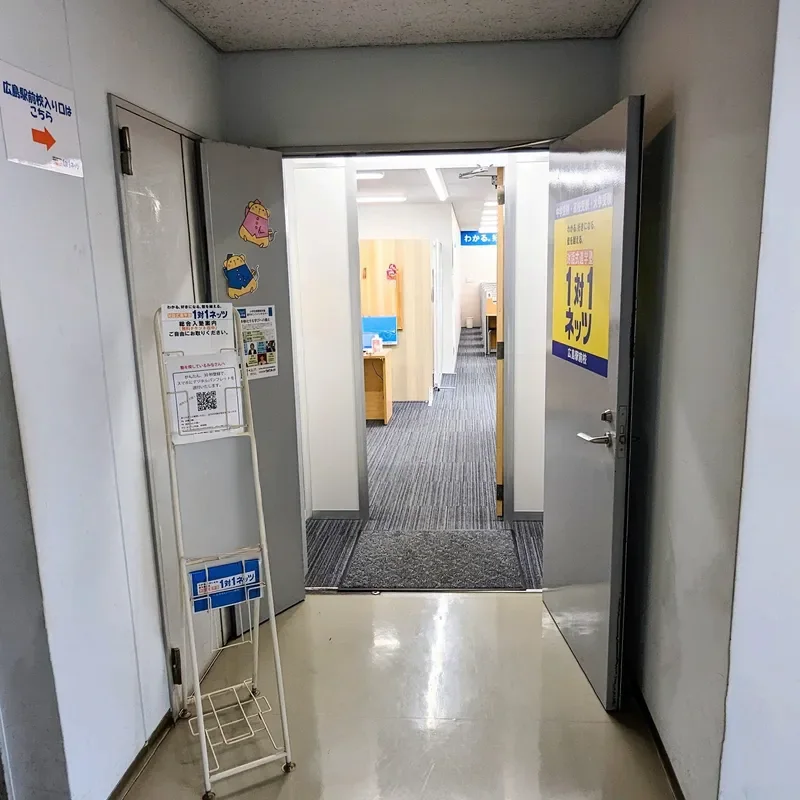 1対1ネッツ広島駅前校は、ゆめマート二葉の里の斜向い、バス停「二葉の里」の目の前にあります。